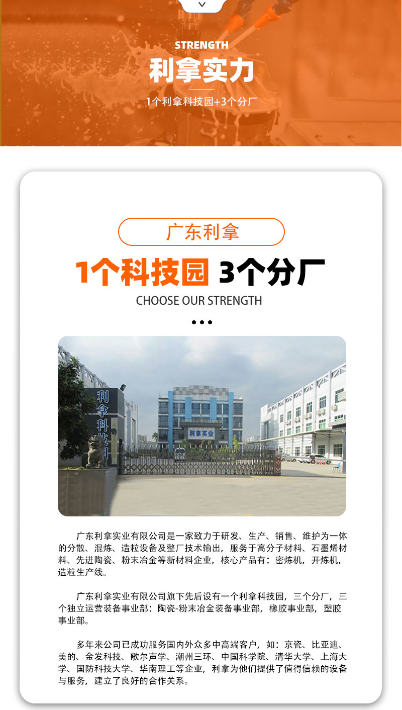 廣東利拿實業(yè)有限公司厚街分公司是一家致力于研發(fā)、生產(chǎn)、銷售、維護為一體的分散、混煉、造粒設備及整廠技術輸出,服務于高分子材料、石墨烯材料、先進陶瓷、粉末冶金等新材料企業(yè),核心產(chǎn)品有:密煉機,開煉機,造粒生產(chǎn)線。